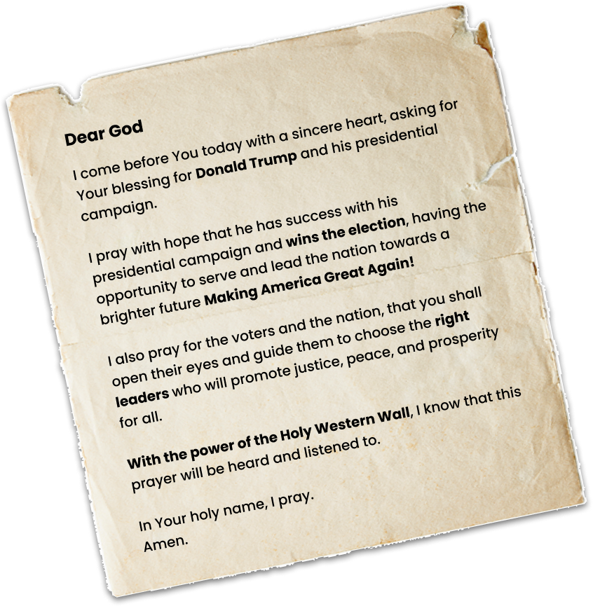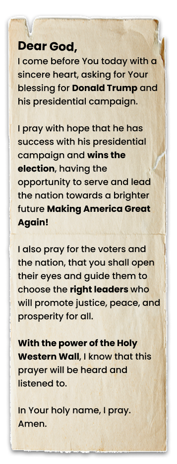 Place a free prayer note in the Western Wall in holy Jerusalem