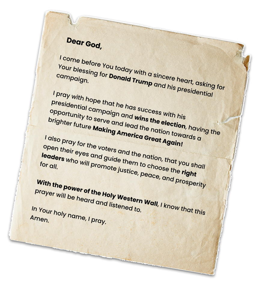 Voting is important, but prayer is our real weapon. I plan to send a prayer for Trump because I believe that every voice and divine assistance can make a difference. I’m confident that God will guide us to choose the right leader, and knowing that I’m contributing on a spiritual level gives me strength and faith."